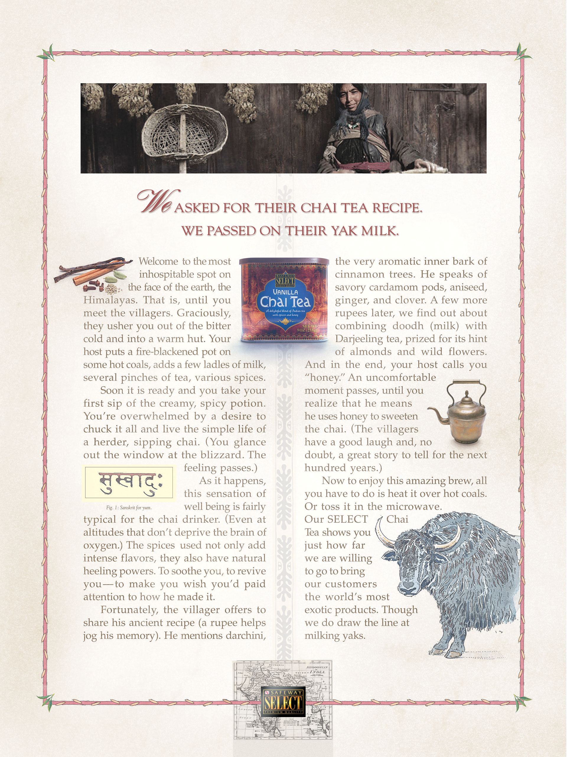 Supermarket retail advertising is not exactly the sexiest of categories. Typically overrun with generic item/ price ads touting the great deals on tomatoes this week. For Safeway we took a completely different approach by advertising their offerings as you would for a national brands. It’s something I call “brandtail” advertising and the results were tremendous.